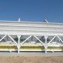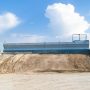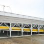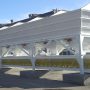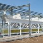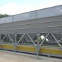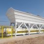 Aggregate-Station für die Lagerung und Abgabe ausgelegt verschiedener Fraktionen von Aggregaten. Silos werden von Aggregaten in Form von Stahlflaschen, in einer Reihe angeordnet sind. Aggregate werden, bezogen auf ein Förderband gemessen. Förderband auf vier Wägezellen Sensoren Bauzuschläge Station unterstützt suspendiert. Fördereinrichtung Wägebrücke Funktionen sowie den Transport des Rohmaterials am Ende des Dosiervorganges nach Mischbehälter.